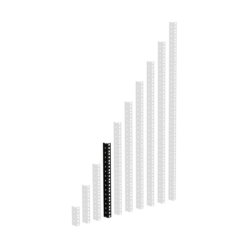 Heavy duty rack strip, similar to 61352BLK, but with three holes per U. 9.5 mm hole size (according to IEC 60297).