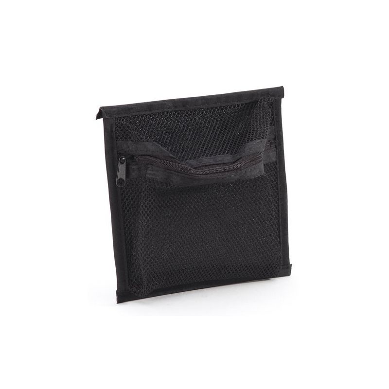 Poche en filet avec fermeture éclair - Velcro (crochets) à l'arrière permettant de détacher la fixation du couvercle de caisse. Dimensions : 155 x 148 mm.