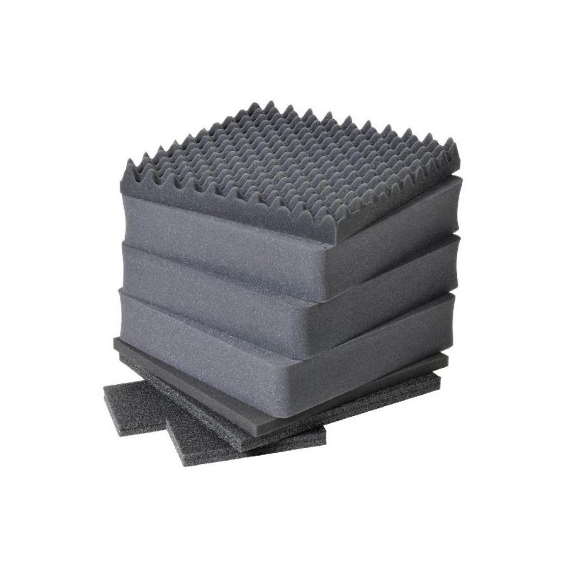 Ensemble de mousse de remplacement PELI 0351 7 pièces pour l'étui 0350 Protector Cube. Cet ensemble de mousse est un système de bricolage facile pour personnaliser l'intérieur de votre étui. Les couches de mousse sont pré-découpées en petits cubes. Il vous suffit de poser votre équipement sur la mousse, de marquer la mousse avec du ruban adhésif ou de la craie, et de l'évider. Assurez-vous toujours de laisser au moins un pouce de mousse entre votre équipement et la paroi de l'étui.